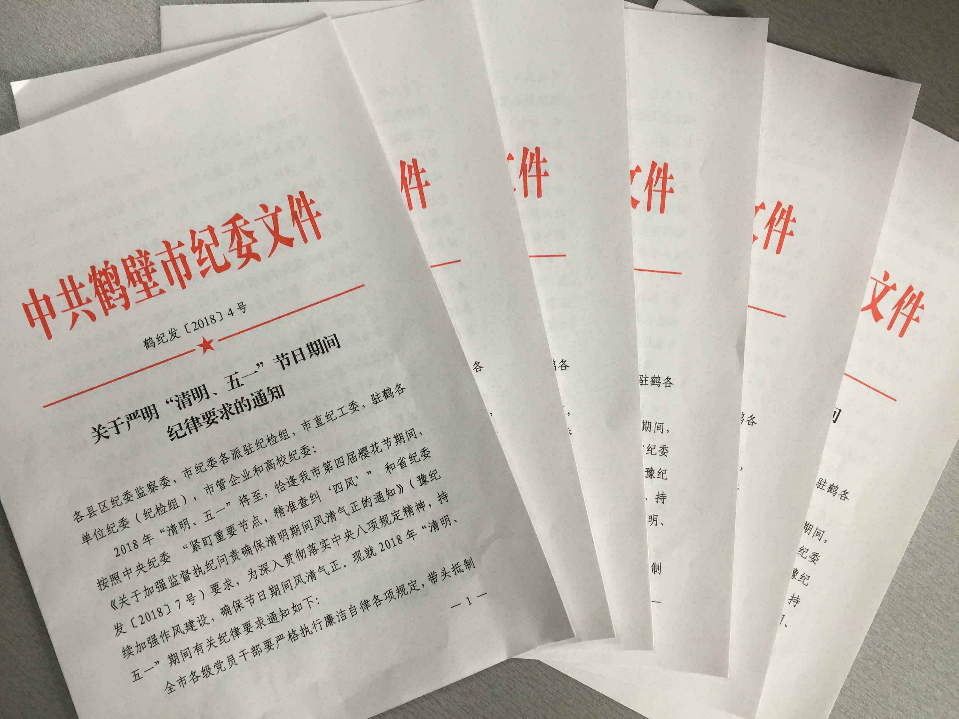 2018年“清明、五一”将至,恰逢我市第四届樱花节期间,按照中央纪委 “紧盯重要节点,精准查纠‘四风’”和省纪委《关于加强监督执纪问责确保清明期间风清气正的通知》(豫纪发〔2018〕7号)要求,为深入贯彻落实中央八项规定精神,持续加强作风建设,确保节日期间风清气正。现就2018年“清明、五一”期间有关纪律要求通知如下:
