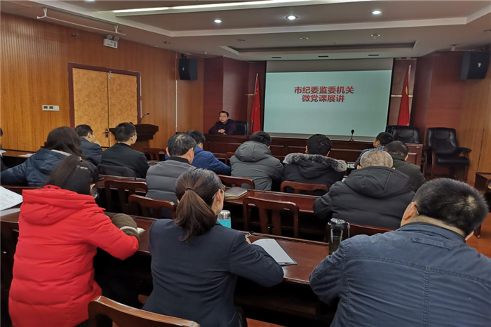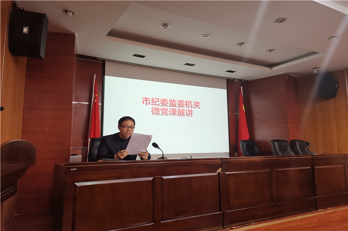2019年12月31日,市纪委监委机关党委举行“不忘初心、牢记使命”微党课展讲活动,机关第一至第五支部派出选手参加。各参赛选手紧密结合机关党建和作风建设工作实际,紧扣时代与社会脉搏,讲理论、述观点,让党员有所思、有所悟,引发大家的思想共鸣,营造讲党性比忠诚、讲责任比担当的浓厚氛围。各参赛选手认真备课、真情讲述,达到了教育人、感染人、引导人的效果。