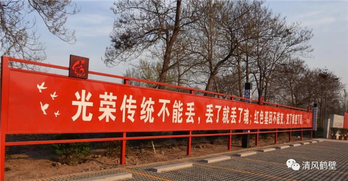 在“红色旅游基地”徽标前集体合影