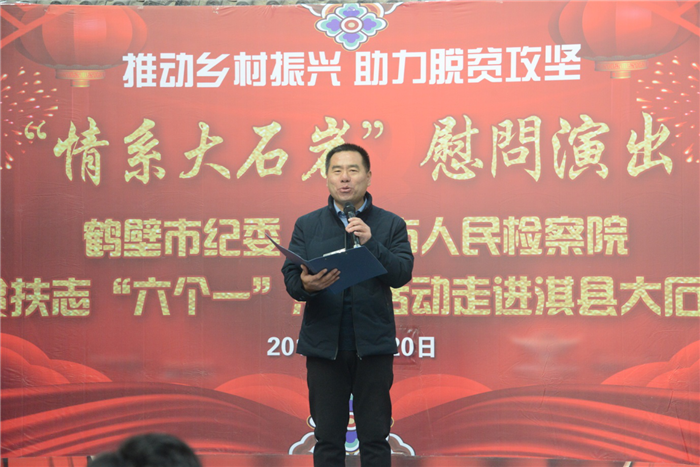2月20日上午,鹤壁市纪委、鹤壁市人民检察院的文明志愿者走进淇县大石岩村送去扶贫扶志“六个一”系列活动,通过开展一次文明风尚宣讲、组织一场文艺戏曲演出、进行一次入户访问、开展一次清洁家园行动、帮助贫困群众确定一个目标、实现贫困群众一个微心愿,教育引导贫困群众激发内生动力,更好地建设美丽乡村、文明家园,推动实施乡村振兴战略,助力打赢脱贫攻坚战。