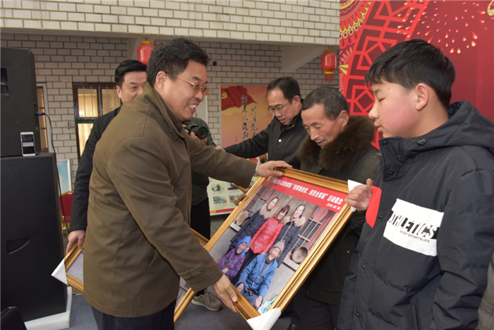 市纪委常委朱国旺代表市纪委监委为大石岩村贫困户代表送上“全家福”。