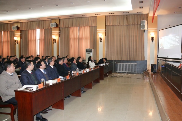 图为山城区区委书记徐伟同志以《坚持纪在法前 坚守纪律规矩》为题在区第一会议室讲授廉政党课