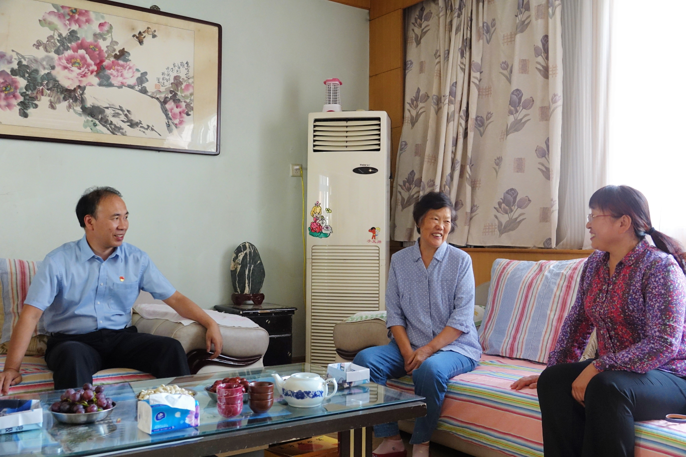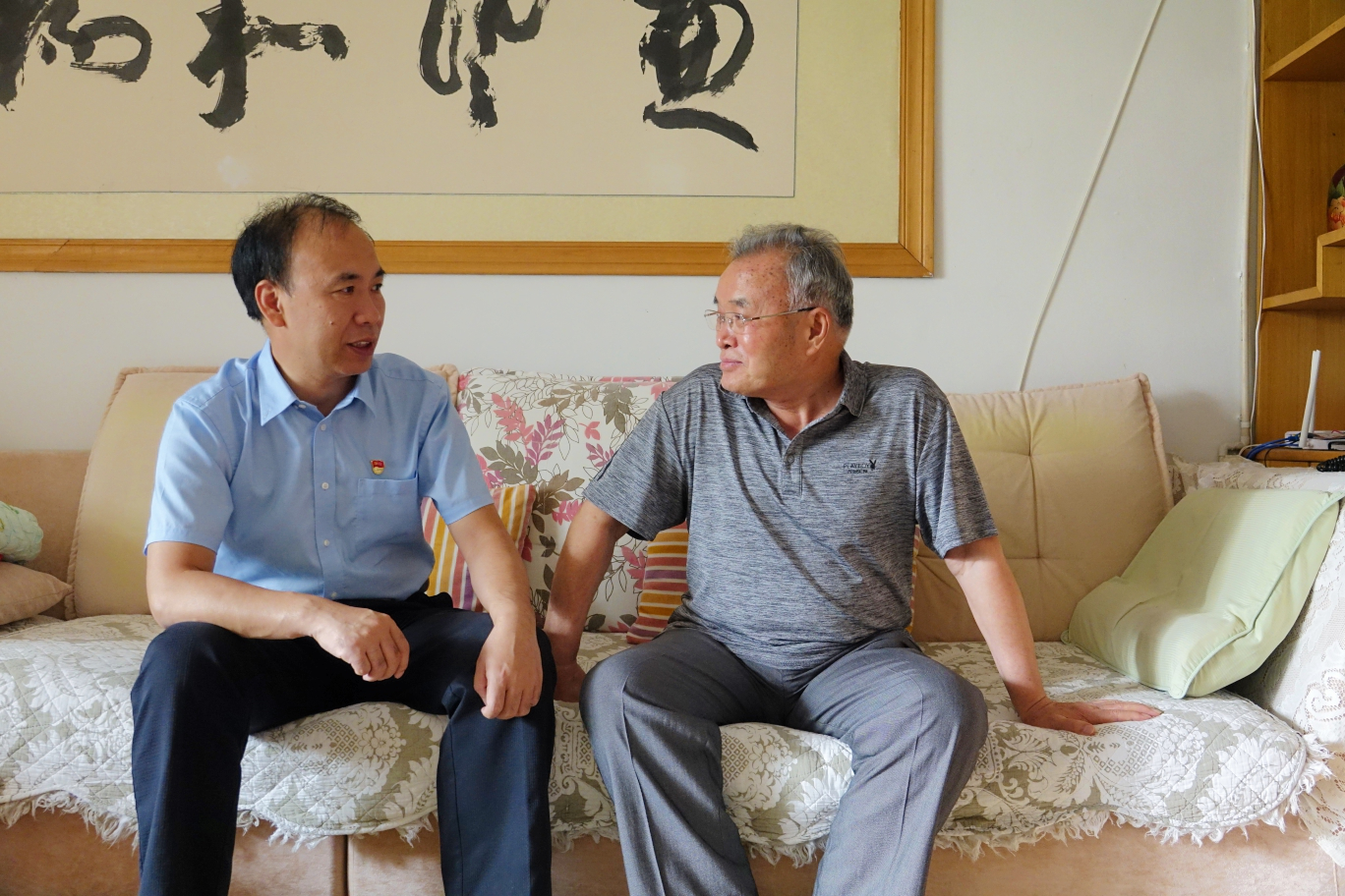 在老干部党安喜家里,冯芳喜亲切询问他身体状况和日常生活情况。