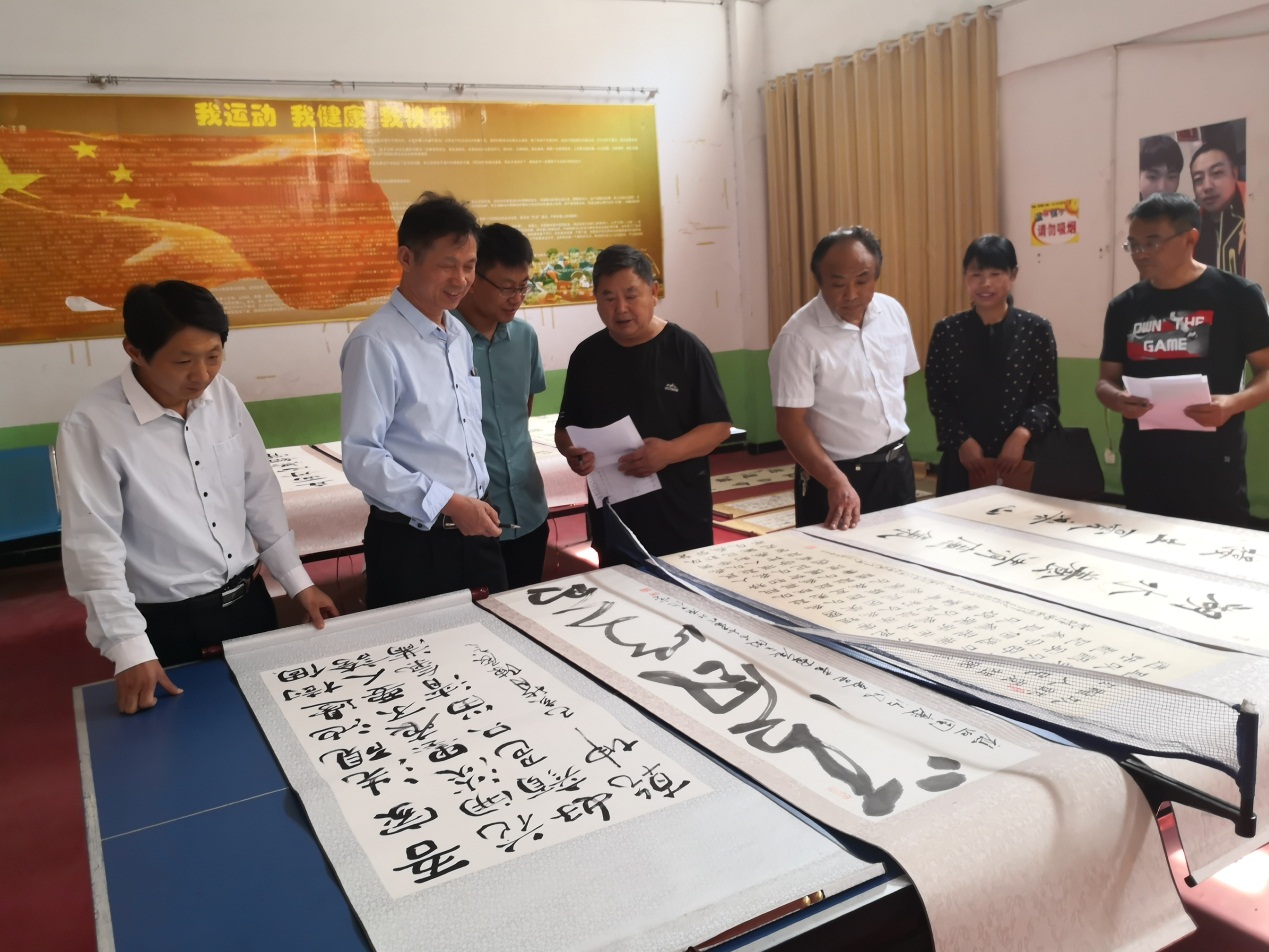 夏邑县纪委监委和县老年书画院书法爱好者在重阳节之际联合开展老年书法交流活动,共同度过一个有文化氛围的重阳节。(夏邑县纪委监委 陈展 摄)