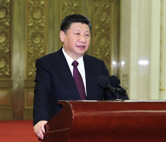 12月28日,中共中央总书记、国家主席、中央军委主席习近平在北京人民大会堂接见回国参加2017年度驻外使节工作会议的全体使节并发表重要讲话。新华社记者 丁林 摄
