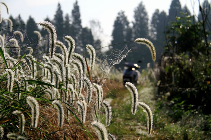 草色还尚青翠,蜘蛛结网成纱。刚刚回家团圆的游子又踏向了远方,不论远行百里千里,故乡泥土的清香、草芥的顽强是心头最温暖的怀想。