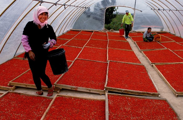 张箩晒喜悦 红催笑颜开