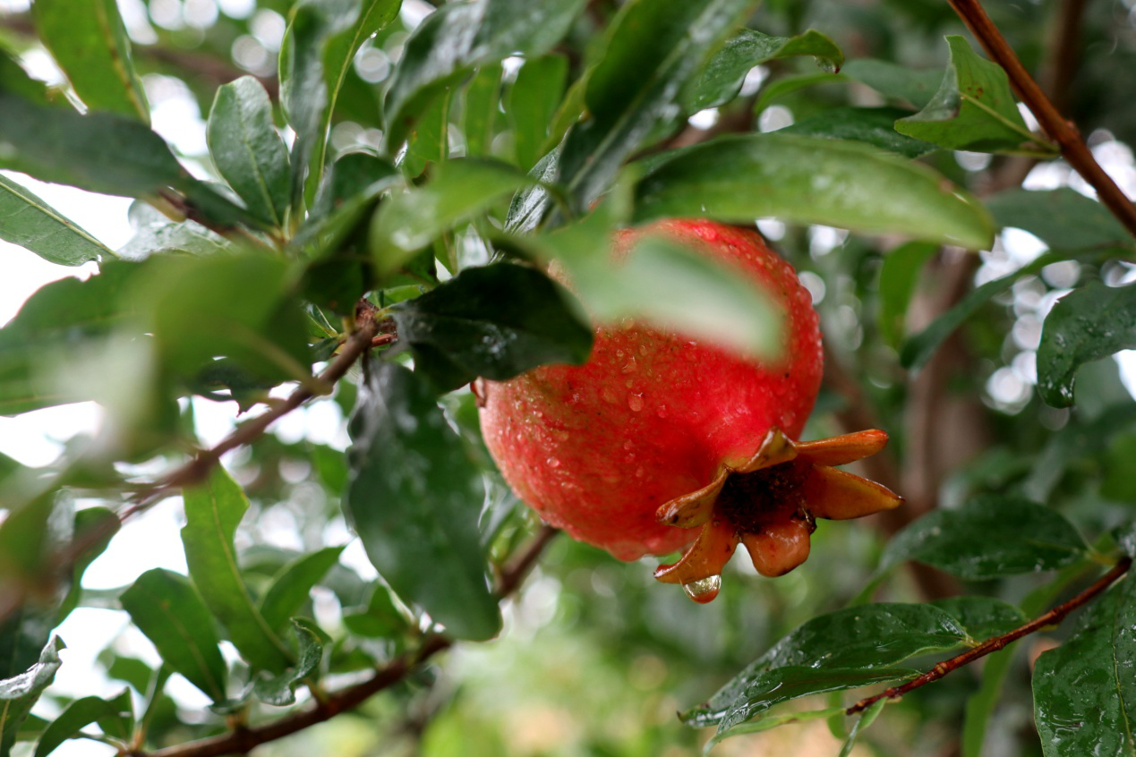 金风初渡,玉露生凉。处暑时节,正是石榴成熟之际,果实尽享秋露的滋润,更显剔透通红。