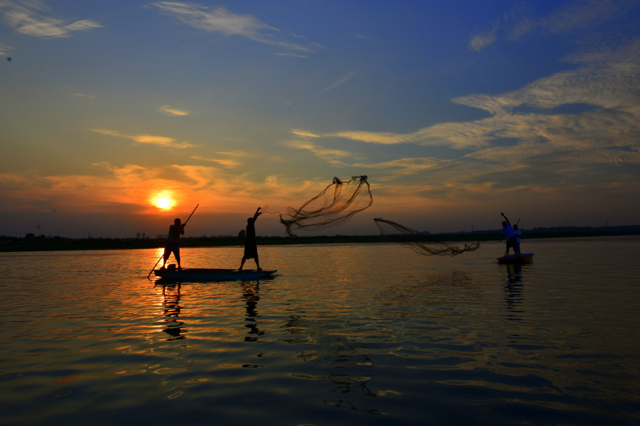 水美鱼肥的季节,渔民们泛舟湖上,与夕阳一并融入秋景之中。