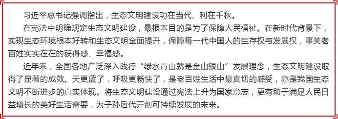 2018年3月11日,十三届全国人大一次会议审议通过《中华人民共和国宪法修正案》, 宪法序言第七自然段加入“生态文明”“美丽”等新表述。将“生态文明”写入国家根本法,经历了怎样的过程?产生怎样重大深远的影响?小栋今天带你一起好好学习。