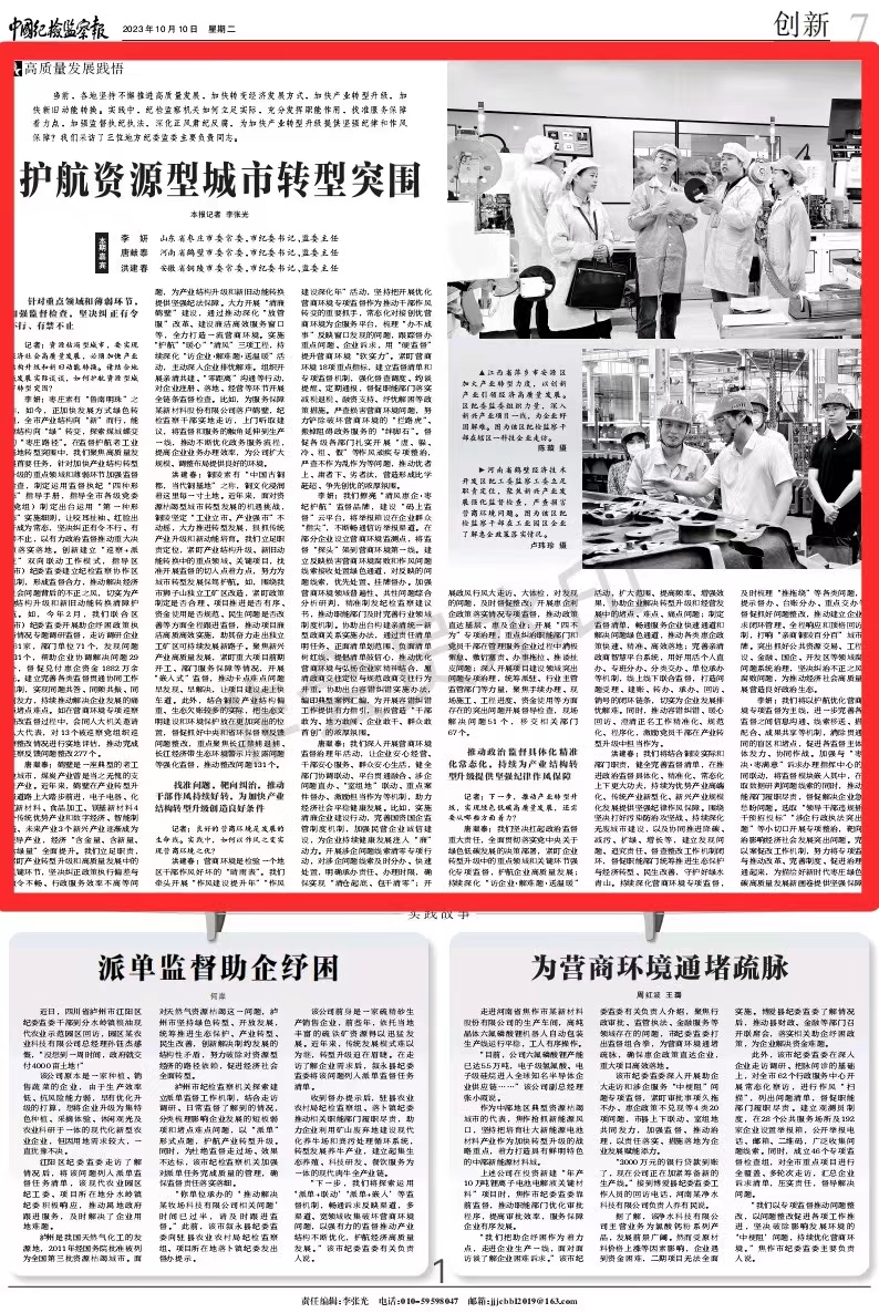 唐献泰:鹤壁是一座典型的老工业城市,煤炭产业曾是当之无愧的支柱产业。近年来,鹤壁在产业转型升级道路上大踏步前进,电子电器、化工新材料、食品加工、镁基新材料4个传统优势产业和数字经济、智能制造、未来产业3个新兴产业逐渐成为主导产业,经济“含金量、含新量、含绿量”全面提升。我们立足职责,紧盯产业转型升级和高质量发展中的关键环节,坚决纠正政策执行偏差与政令不畅、行政服务效率不高等问题,为产业结构升级和新旧动能转换提供坚强纪法保障。大力开展“清廉鹤壁”建设,通过推动深化“放管服”改革、建设廉洁高效服务窗口等,全力打造一流营商环境。实施“护航”“暖心”“清风”三项工程,持续深化“访企业·解难题·送温暖”活动,主动深入企业排忧解难。组织开展亲清共建、“零距离”沟通等行动,对企业注册、落地、经营等环节开展全链条监督检查。比如,为服务保障某新材料股份有限公司落户鹤壁,纪检监察干部实地走访,上门听取建议,将监督和服务的触角延伸到生产一线,推动不断优化政务服务流程,提高企业业务办理效率,为公司扩大规模、调整布局提供良好的环境。