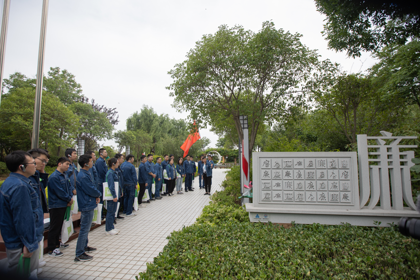鹤淇发电青年员工脚踏“青清成长”之路,参观“初心使命、廉政文化、榜样力量、廉政警钟”等文化景观,进一步增强了廉洁从业意识,夯实了清正廉洁思想根基。(图为青年员工参观廉政文化园)