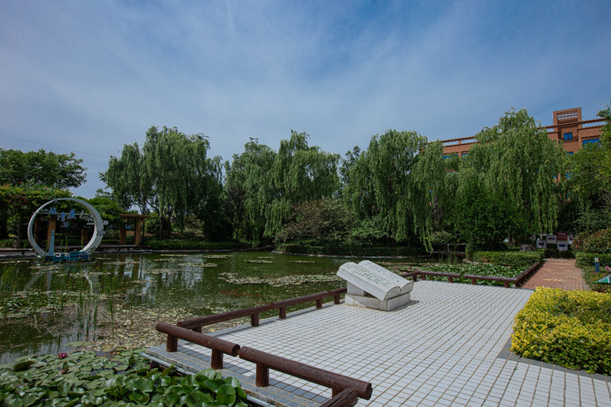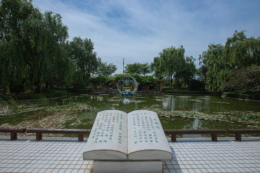“出淤泥而不染,濯清涟而不妖。”在爱莲池畔的书形石雕上,刻有《爱莲说》,通过对莲形象和品质的描写,歌颂莲花坚贞不屈的品格,表达了作者洁身自爱的崇高人格。(图为爱莲石)