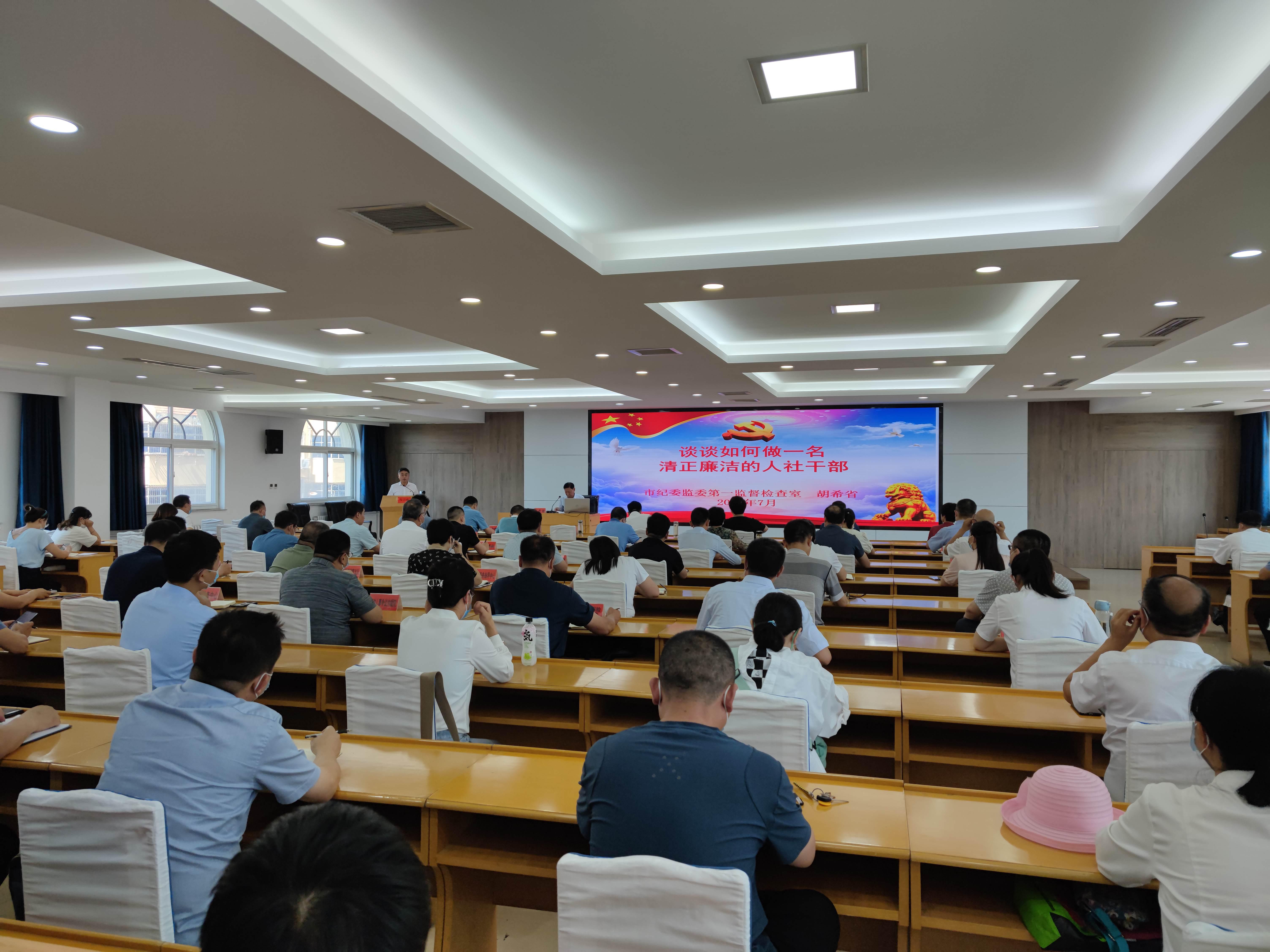 驻市人社局纪检监察组邀请市纪委监委第一监督检查室副主任、四级调研员胡希省以《谈谈如何做一名清正廉洁的人社干部》为题为市人社局党员干部上廉政党课。(驻市人社局纪检监察组巩飞摄)