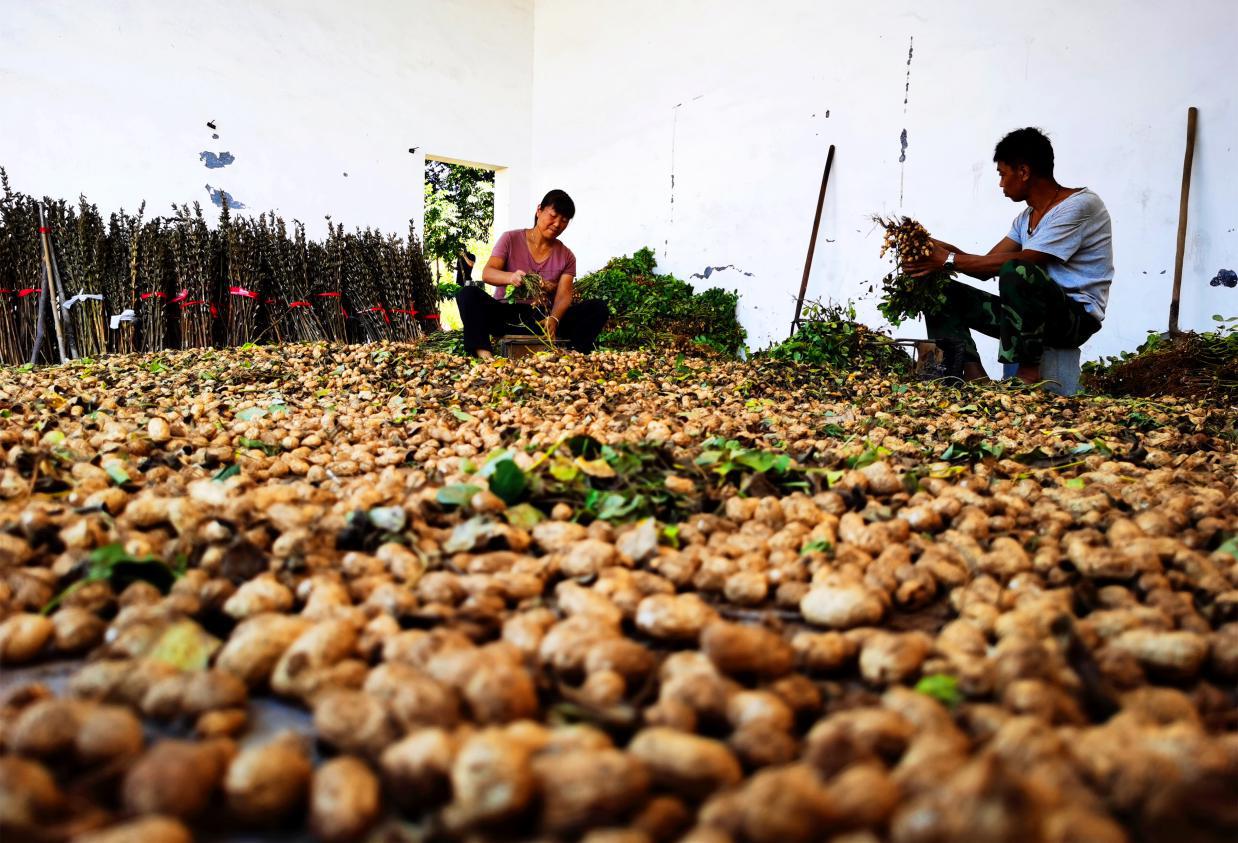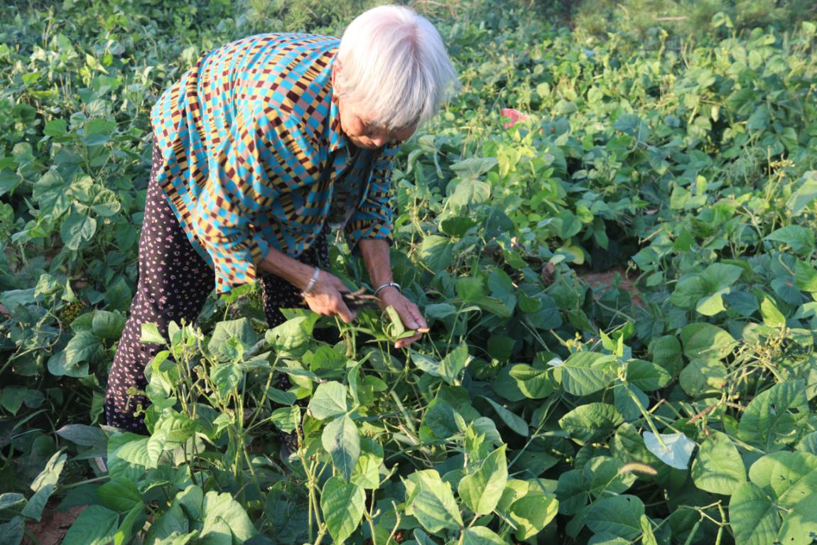 白露时节绿豆豆荚有2/3变成黑褐色,农民忙着收摘。