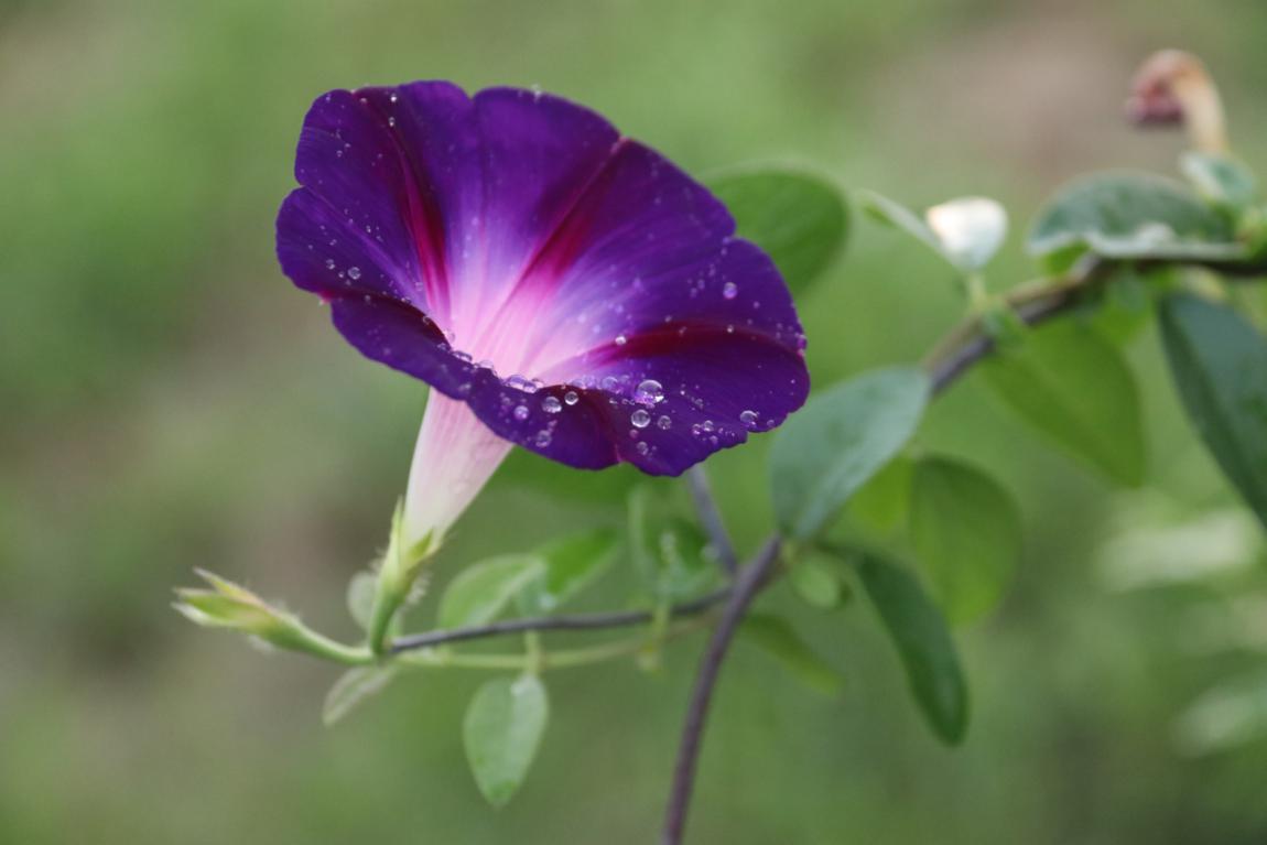 只一个早上,喝足了露水的牵牛花就蹿高了两三寸,它们迎风摇摆,充满生机。