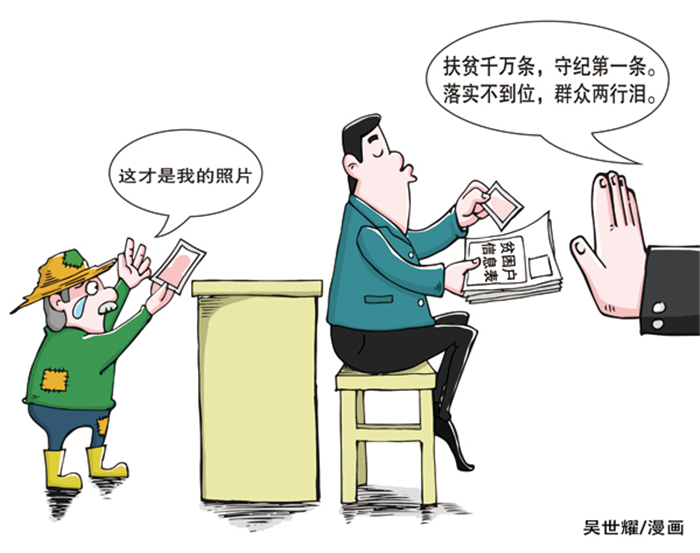 某村助理会计付某弄虚作假。2016年3月,按照精准确定扶贫对象要求,应上报贫困户信息采集表及户主本人与自家房屋正面照片。付某作为该项工作负责人,不认真落实工作任务,没有按要求采集贾某等9户贫困户的户主本人照片,而用同村其他村民照片顶替,将不实信息报送至街道扶贫办,造成不良影响。付某受到党内警告处分。