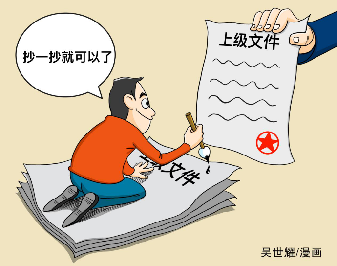 【典型案例1】某县人社局干部陈某起草文件照搬照抄问题。2017年5月,陈某在起草《某县人力资源和社会保障系统精准扶贫行动实施方案》时,绝大部分内容照搬照抄上级文件,未结合当地实际细化举措,且多处出现错误,影响工作落实,造成不良社会影响。2018年4月,陈某受到政务警告处分,负有领导责任的县人社局副局长陈某受到诫勉谈话处理。