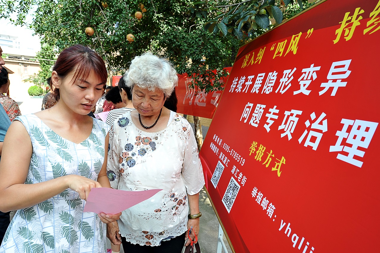河南省各级纪检监察机关把纠“四风”和树新风紧密结合起来,精准有效推进作风建设。图为近日,河南省漯河市源汇区纪委监委干部在开展隐形变异问题专项治理中向群众收集问题线索。