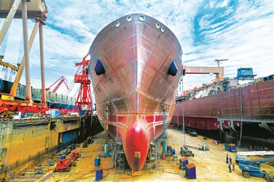 航母、LNG船、大型邮轮三颗明珠创新智造刷新纪录,中国造船向海图强奋楫逐浪,充分体现了社会主义制度集中力量办大事的优越性