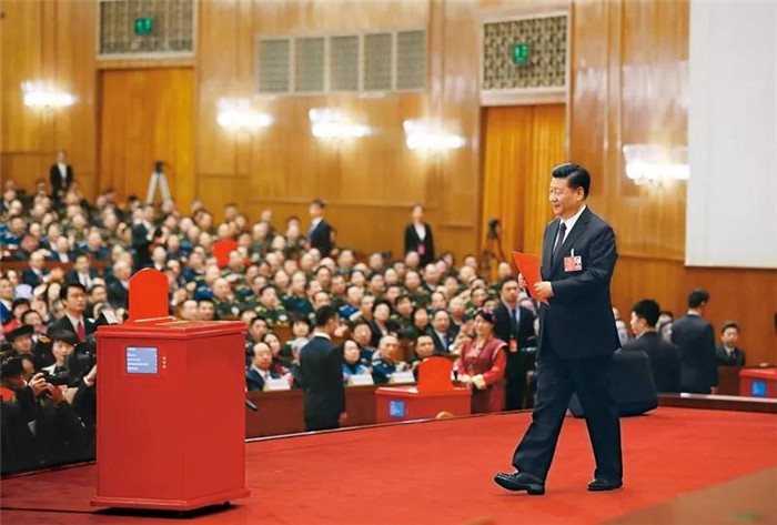 2018年3月17日,十三届全国人大一次会议在北京人民大会堂举行第五次全体会议。习近平当选中华人民共和国主席、中华人民共和国中央军事委员会主席。这是习近平准备投票。新华社记者 兰红光/摄