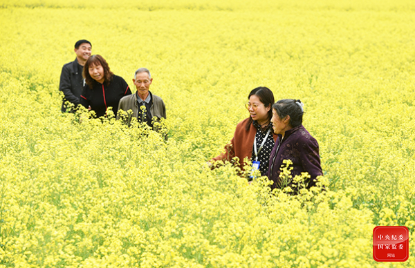 杭州市临安区潜川镇牧亭村注重调整农业生产结构,大力发展特产农业,潜川镇纪检监察干部深入田间地头,了解油菜等经济作物的生产情况,为发展壮大村级集体经济保驾护航。(杭州市临安区纪委监委 金凯华 摄)