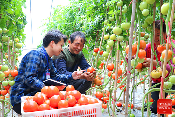 江苏省盱眙县纪委监委持续跟踪督查脱贫村居和农户收入变化以及“两不愁三保障”巩固情况,督促职能部门建立健全防止返贫、解决新生和次生贫困长效机制,为巩固脱贫攻坚成果、有效衔接乡村振兴精准护航。图为该县纪检监察干部在河桥镇某西红柿种植大棚走访了解惠农补贴发放情况。(江苏省盱眙县纪委监委 王小龙 摄)
