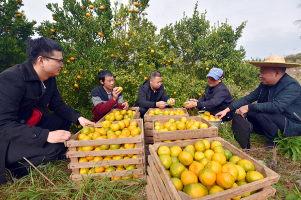 贵州省各级纪检监察机关聚焦巩固拓展脱贫攻坚成果同乡村振兴有效衔接等工作,推动监督下沉、监督落地。图为贵州省黔东南州锦屏县纪委监委扶贫与民生监督室干部到该县敦寨镇龙池村椪柑农民种植专业合作社了解情况。杨函祥 摄