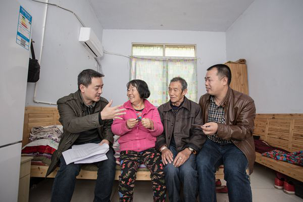 四川省遂宁市船山区纪检监察干部向群众核实生活补贴资金到位情况。(罗诺飞 供图)