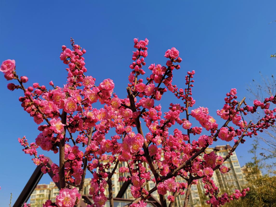 阳春三月梅花开,千里飘香惹人爱。近日,淇滨区梅·廉洁文化主题游园内的梅花争相盛开、春意绽放,盛放的梅花缀满了枝头,花香似有似无令人心醉,细细一闻,一股香气不禁迎面扑来,馨香阵阵,淡雅清新,顿时使人感到心旷神怡,让人们感受到了早春的气息。