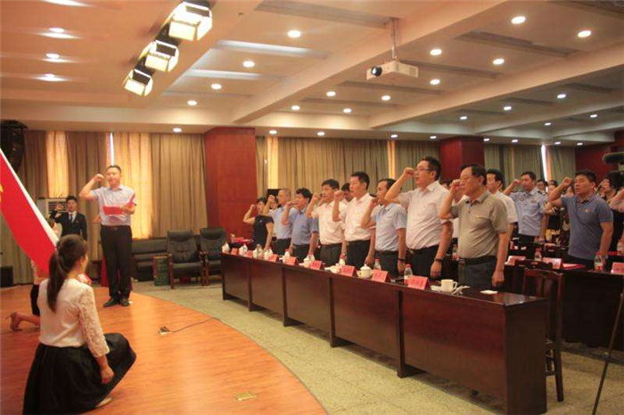 6月27日,市经济技术开发区全体党员干部在庆祝建党98周年暨表彰大会上重温入党誓词。
