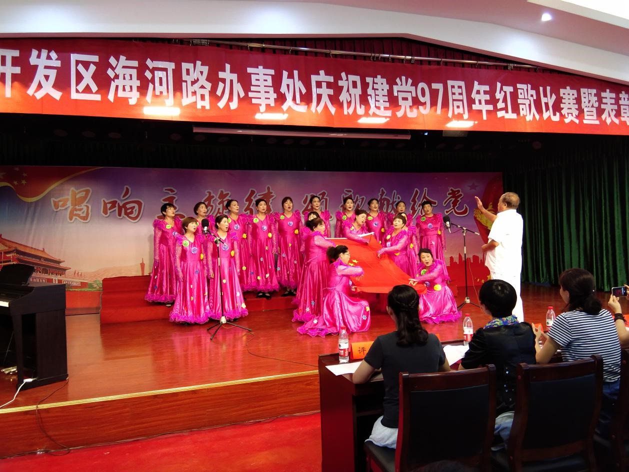 开发区海河路办事处举办庆祝建党97周年红歌比赛,展示党员干部不忘初心、牢记使命,为建设美好生活努力奋斗的精神风貌