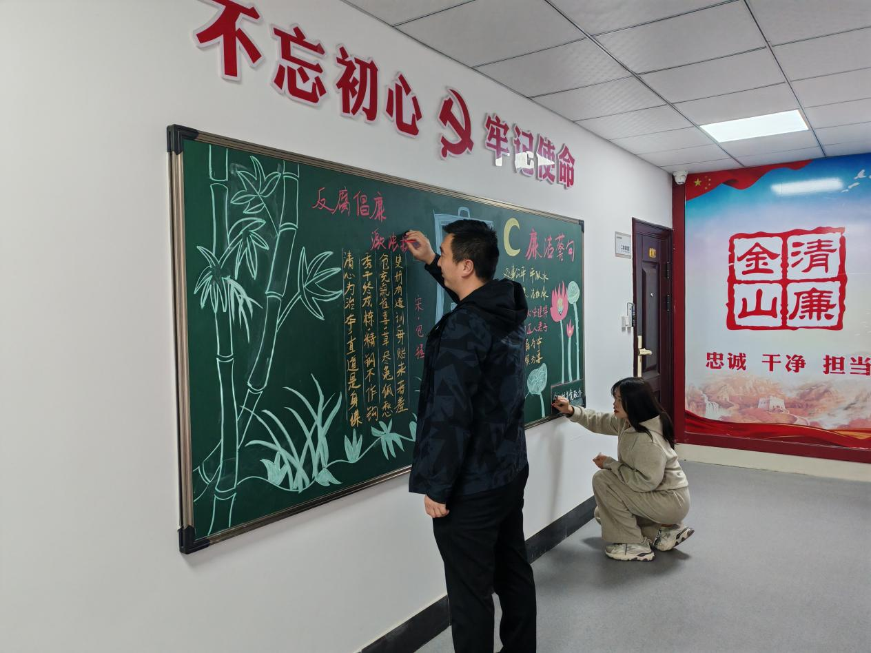 淇滨区金山街道纪工委通过创新设计“小黑板”、文化墙等学习交流阵地,以“实案讲学”、制作学习板报等形式,教育引导党员干部学纪学法、思廉守廉。(淇滨区纪委监委 唐澜涛 摄)
