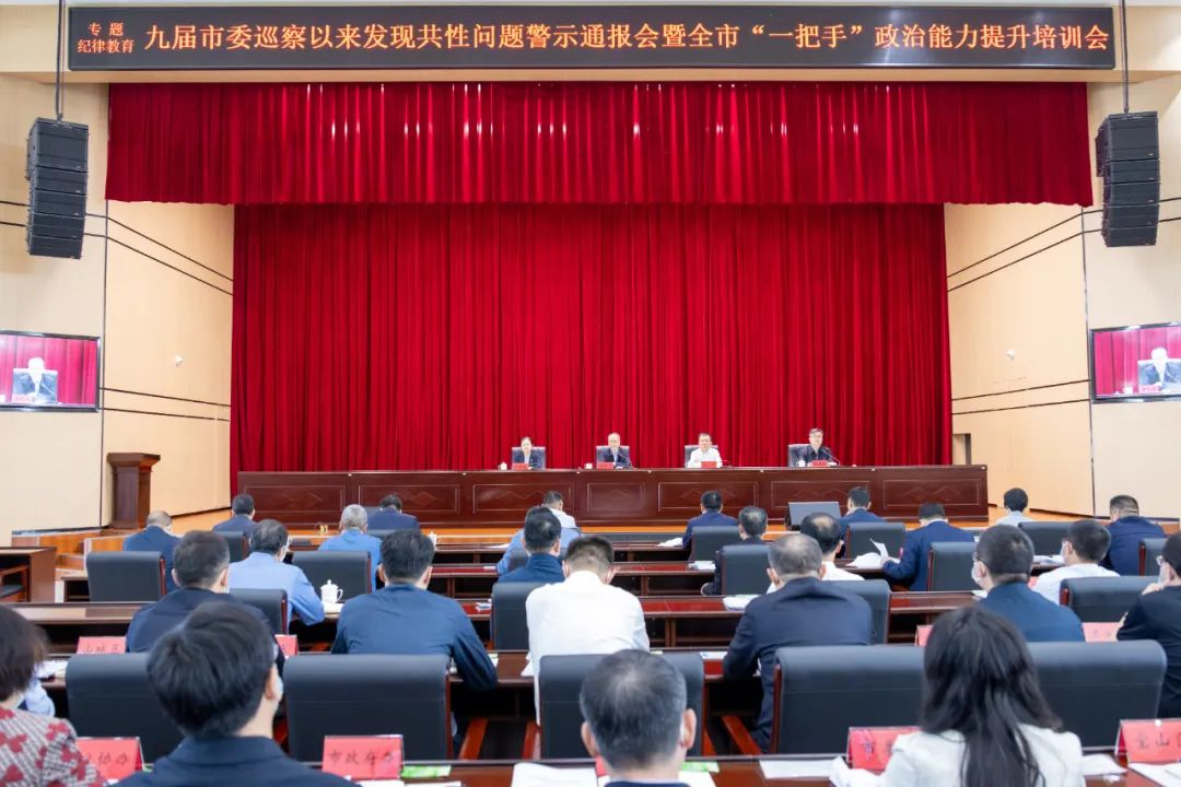 全市纪检监察机关立足本地实际,坚持全面发力、高位推动、分层分类,多层次、具体化、精准化开展纪律教育活动,引导党员干部增强纪律规矩意识。图为专题纪律教育·九届市委巡察以来发现共性问题警示通报会暨全市“一把手”政治能力提升培训会现场。(张宏宇 摄)