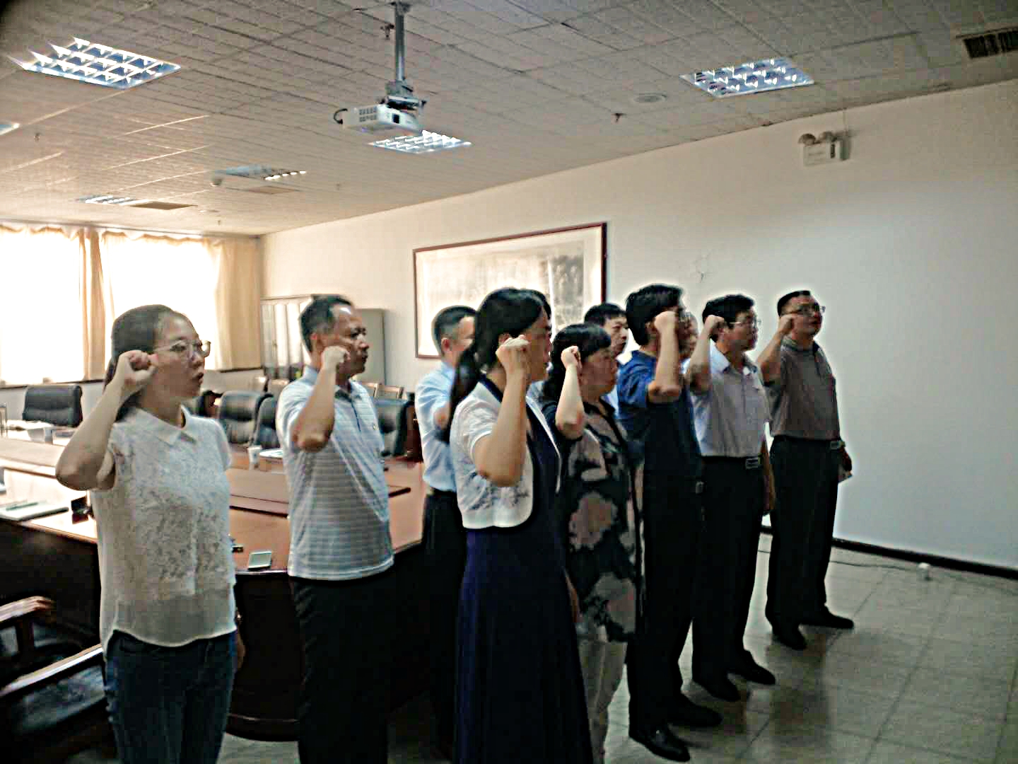 6月27日下午,市纪委派驻纪检组以案促改第一组举行庆祝建党97周年“重温党章 牢记誓词”活动。面对党旗,全体党员佩戴党员徽章,庄严宣誓,随后集体观看了《党旗党徽入党誓词背后的历史》纪录片,接受党性教育和灵魂洗礼。