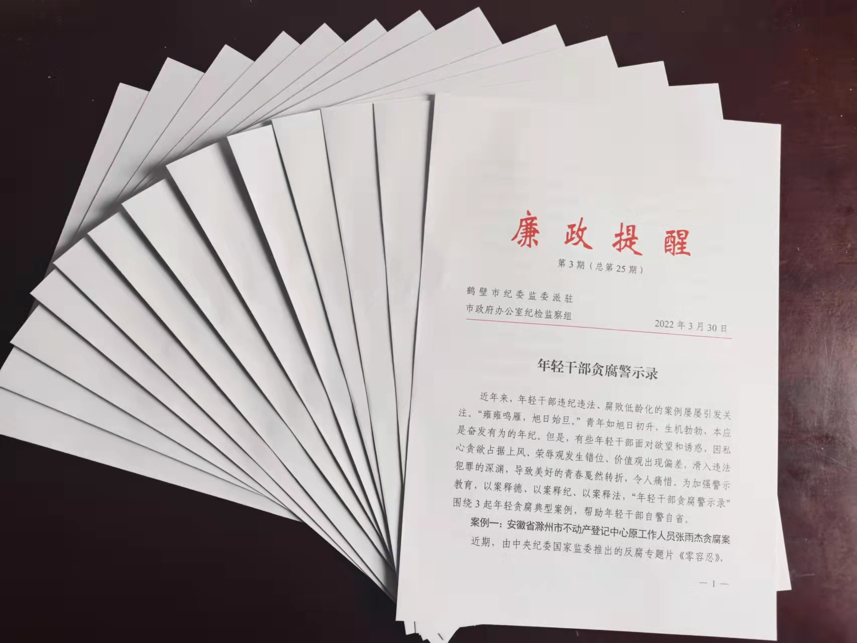 “这期廉政提醒应该叫‘年轻干部贪腐警示录’,既有对年轻干部的警醒,又对如何抓好年轻干部教育管理提供了方法,可读性和实用性都很强。”市政府办机关党委专职副书记郭利明一口气看完了最新一期的《廉政提醒》,深有感触地说道。