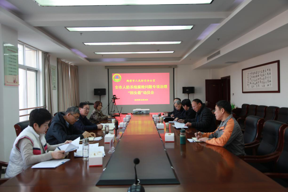 2019年12月30日,市人防办召开全市人防系统腐败问题专项治理“回头看”动员会,决定自2019年12月下旬至2020年2月底,以自查自纠、跟踪督查的方式,在全市开展人防系统腐败问题专项治理“回头看”。对已整改事项进行全面检视、逐一梳理;未完成的加大工作力度,明确整改时限。结合形势发展和自身实际修订完善各项规章制度,着力解决操作性不强、执行力度不够等问题,持续推动构建人防工作长效机制、推动专项治理工作向标本兼治迈进、向纵深发展。