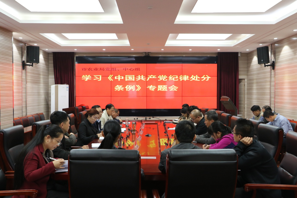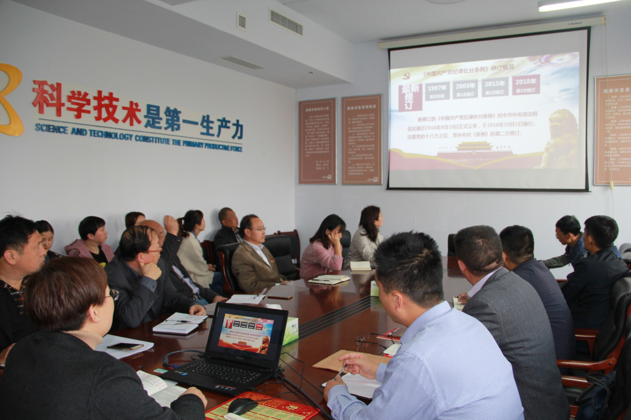 驻市农业局纪检监察组围绕《条例》历次修改的背景、意义和修订特点等方面,向局机关全体党员干部进行解读辅导。