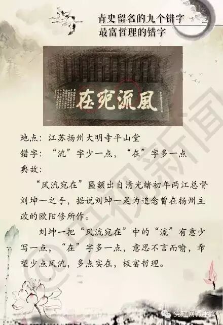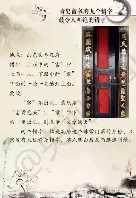 在江苏扬州大明寺平山堂和山东曲阜孔府,牌匾上都有“错别字”。但这样的字都“错得有理”,最终都成为后人传说的一段佳话。为什么?