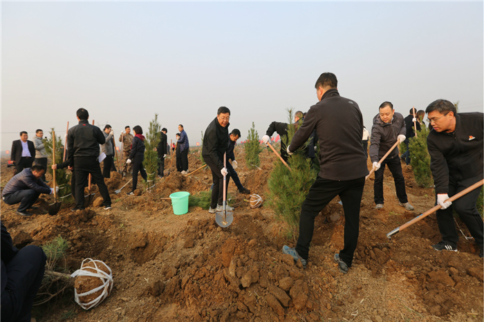 当天,全市在各县区、乡(镇、街道)共设置义务植树基地32处,参加植树的干部群众4.2万人,植树32.6万株,绿化面积4500亩,冬季造林绿化高潮迅速掀起。(鹤壁日报首席记者 张心致)