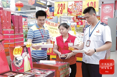 “中秋”“国庆”假期临近,福建省厦门市翔安区纪委监委联合税务、市场监管等部门,对公款购买节礼等问题开展专项检查。图为9月1日,检查组到某超市了解机关单位公款购买月饼情况。陈景赐 摄