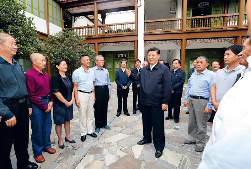 2019年9月16日至18日,中共中央总书记、国家主席、中央军委主席习近平在河南考察。这是16日下午,习近平在位于信阳市新县的鄂豫皖苏区首府革命博物馆,同当地红军后代、革命烈士家属代表亲切交谈。新华社记者 鞠鹏/摄