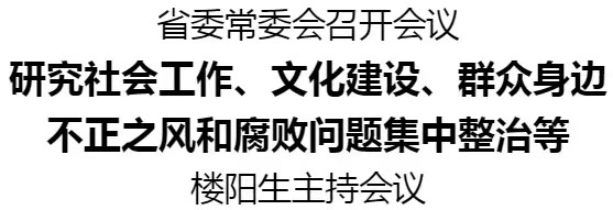 11月8日,省委常委会召开会议,研究社会工作、文化建设、群众身边不正之风和腐败问题集中整治、巩固拓展脱贫攻坚成果同乡村振兴有效衔接、医学科学创新等。省委书记楼阳生主持会议。