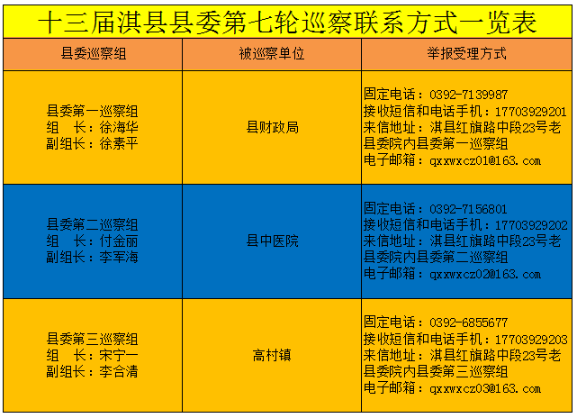 巡察期间,各巡察组开通举报电话、接收短信手机、邮政信箱和电子邮箱。