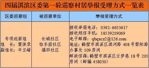 12月28日,淇滨区委巡察组对黎阳路办事处长城社区、怡乐园社区和泰山路办事处福田社区,开展为期20天左右的巡察。