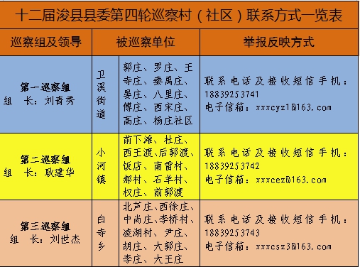 11月11日起,浚县县委10个巡察组分别对小河镇郝村等100个村(社区)党支部开展为期两个月的巡察工作。