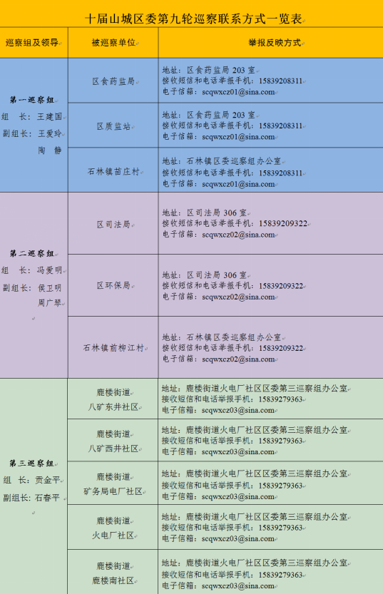 巡察期间,各巡察组均开通接收短信手机和电子邮箱,并在被巡察单位办公地点设立举报信箱。