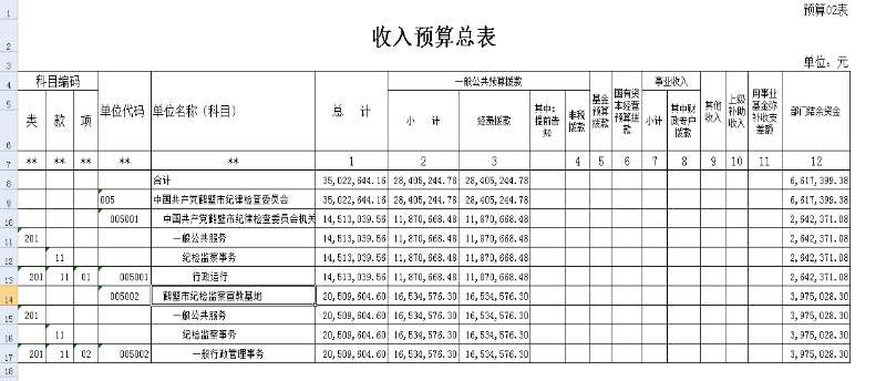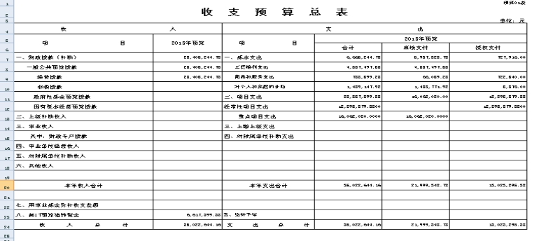 收支预算总表