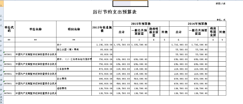 厉行节约支出预算表