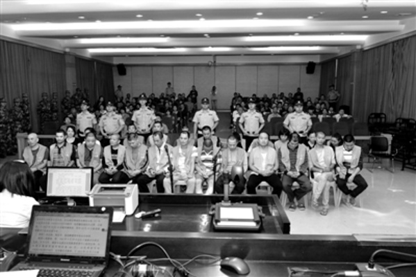 图为部分涉案人员在法庭接受审判。莆季 摄